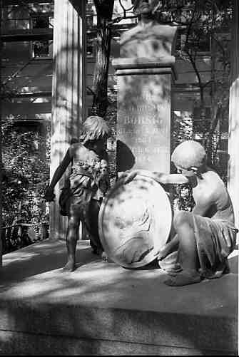 Das Grabmal des Industrieellen August Borsig in einer älteren Aufnahme. Die Skulptur links wurde gestohlen.