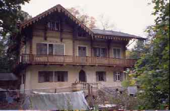 Abstieg zu den originellen Schweizerhäusern, die zwischen 1863 und 1867 im Zuge der damaligen Schweizer-Mode errichtet wurden.
