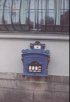 Hier muß man zweimal hinsehen! Briefkasten in ungewöhnlichem Design. Pseudonostalgische Details bei der Umgestaltung des Mexikoplatzes anläßlich der 750-Jahrfeier Berlins